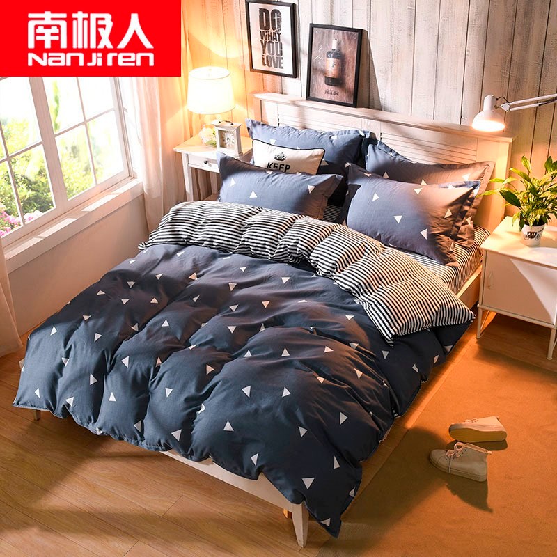 南极人(NanJiren)家纺 简约全棉四件套床上用品纯棉斜纹双人被套床单式4件套